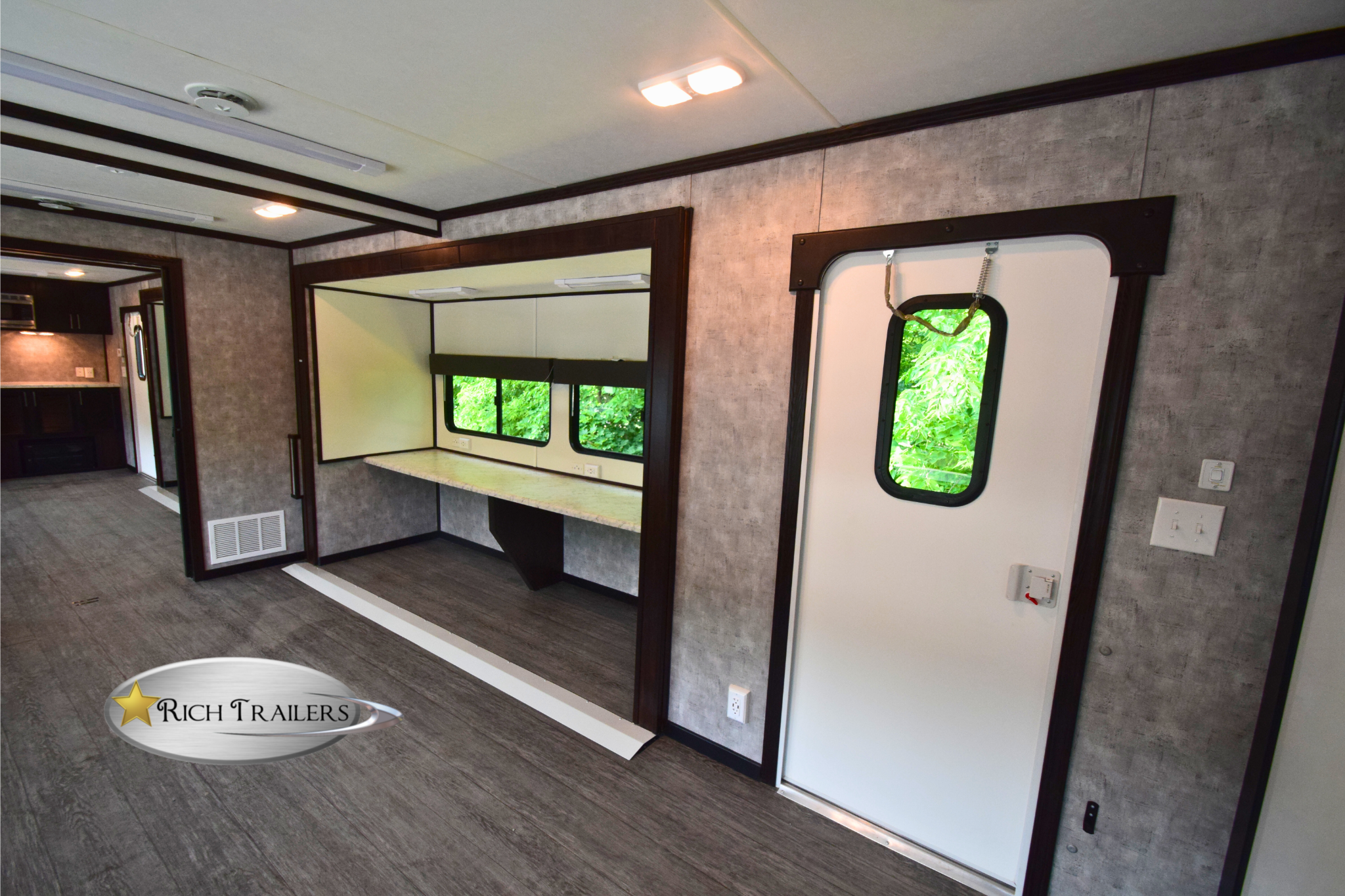 The BH8536 Command Trailer is a 14-station mobile command center designed for optimal efficiency, perfectly fitting within a 36-foot floor plan. Available in various configurations, this model offers up to four slide-out rooms, which expand the workspace significantly. These additional rooms provide ample area for teams to operate productively and maintain a professional work environment. The trailer’s thoughtfully designed layout allows for maximum utilization of space, ensuring all tasks are performed smoothly and effectively.