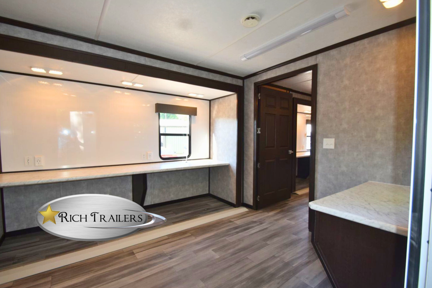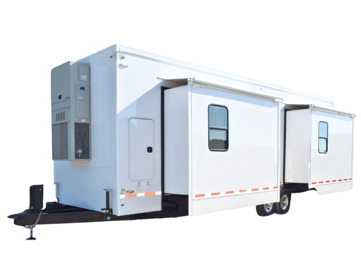 The CC8530 Command Office Trailer is an 8-station mobile command center, designed to fit seamlessly into a towable 30-foot floor plan. This compact layout makes it ideal for teams needing mobility without compromising productivity. With the addition of two slide-out rooms, this trailer offers expanded workspace, ensuring that teams can stay organized and productive even in demanding situations.