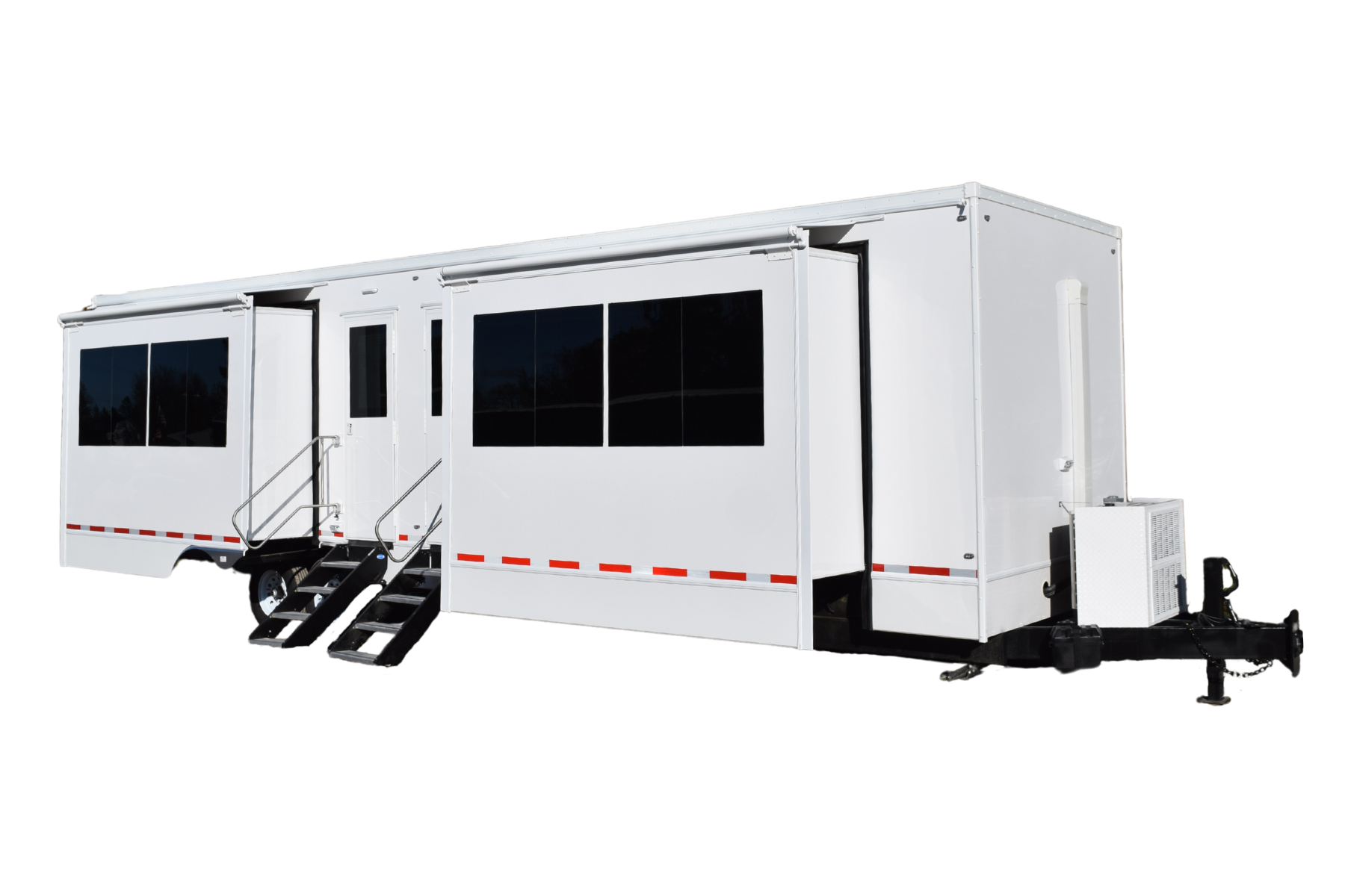 These trailers are equipped with state-of-the-art amenities to enhance comfort and productivity. Climate-controlled air conditioning, electric or gas heating, and optional Bluetooth stereo systems create a relaxing atmosphere where actors can unwind. Designed with flexibility and attention to detail, these trailers combine practicality and elegance, delivering a premium experience that ensures your cast stays refreshed and ready to perform.