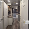 The Nine-Station Restroom Trailer also comes with a selection of interior finishes to meet diverse needs. For rugged or high-traffic environments, durable options include white fiberglass, mar-resistant walls, and waterproof vinyl trim, ensuring easy maintenance and long-lasting performance. Poly-plastic vanities and solid waterproof countertops add further resilience for demanding settings. For more refined events, the upgraded interior option features hand-finished hardwood trim, premium LED lighting, and elegant vessel sinks with gooseneck faucets. Grey silk mar-resistant, waterproof walls complete this stylish and functional design.