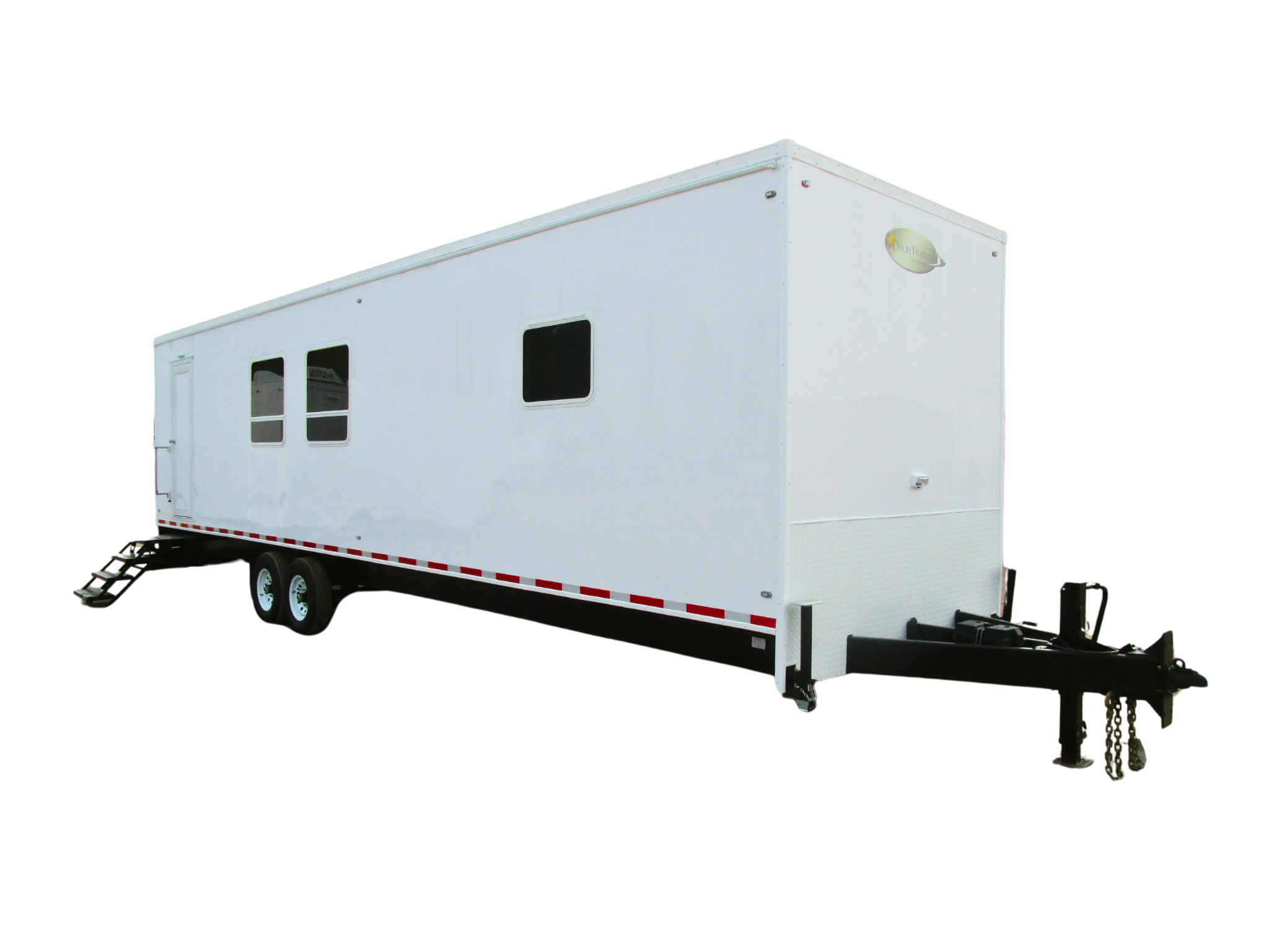 Oil field supervisor trailers offer high-quality accommodations in demanding environments, often referred to as executive living trailers due to their advanced amenities. Designed with functionality in mind, these trailers feature a private bedroom, a restroom, and a climate-controlled interior to maintain comfort year-round. Built with a durable, all-fiberglass exterior and a heavy-duty chassis, each trailer is equipped with an upgraded axle, radial tires, and electric brakes. Additionally, a ceiling-ducted air conditioner with a wall thermostat and options for electric or gas heating ensure comfort regardless of external conditions. For added convenience, the restroom can include either a sink and toilet or an expanded setup with a shower.