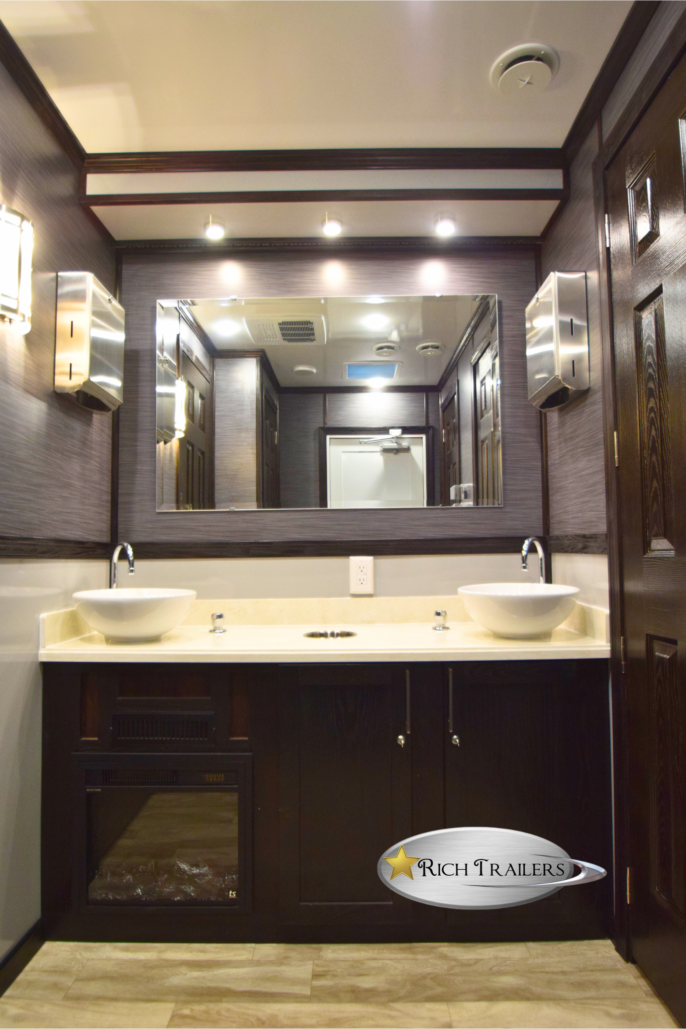 Designed to meet the needs of various venues, the trailer includes thermostat-controlled air conditioning and heating, secured by a keyed lockbox. Winter packages provide extra assurance in cold climates, with electric heaters, heat pads, and wraps to protect water lines and waste tanks. For added comfort, an electric hot water heater delivers hot and cold running water at each sink.