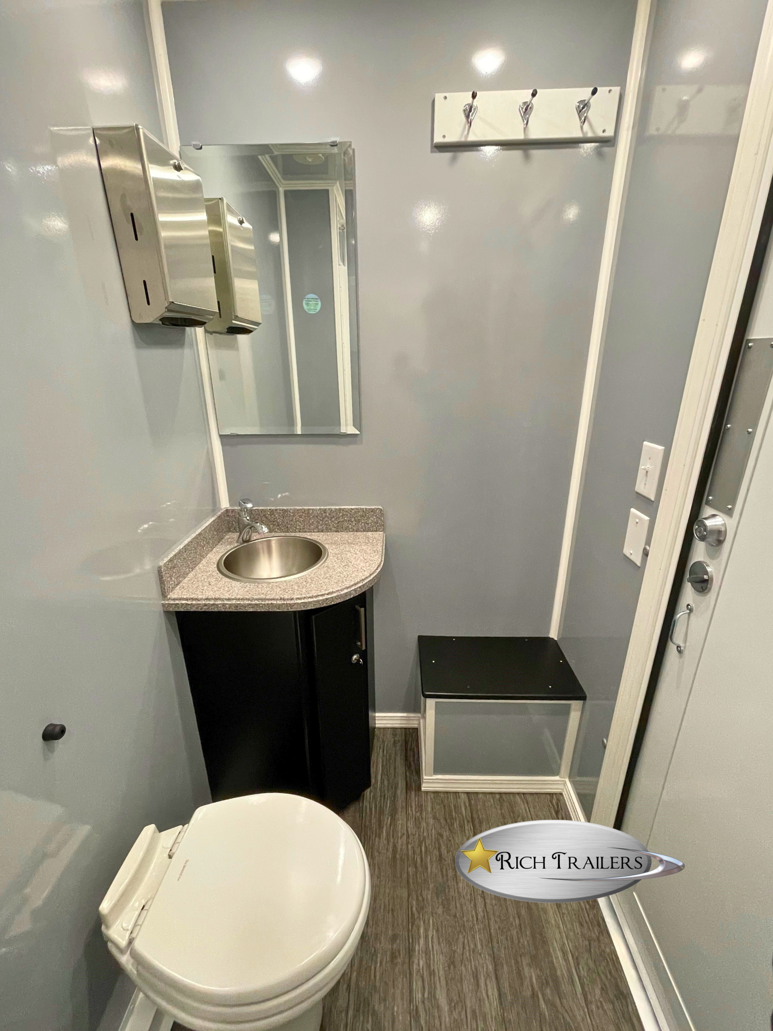 Whether for public or private use, the Grey Silk decor ensures your portable shower trailer is equipped to deliver a premium experience for every user.